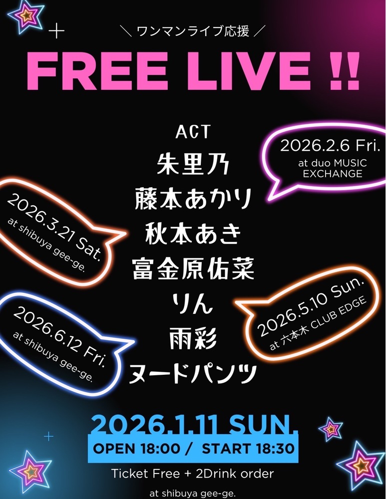 【ワンマンライブ応援】FREE LIVE !!